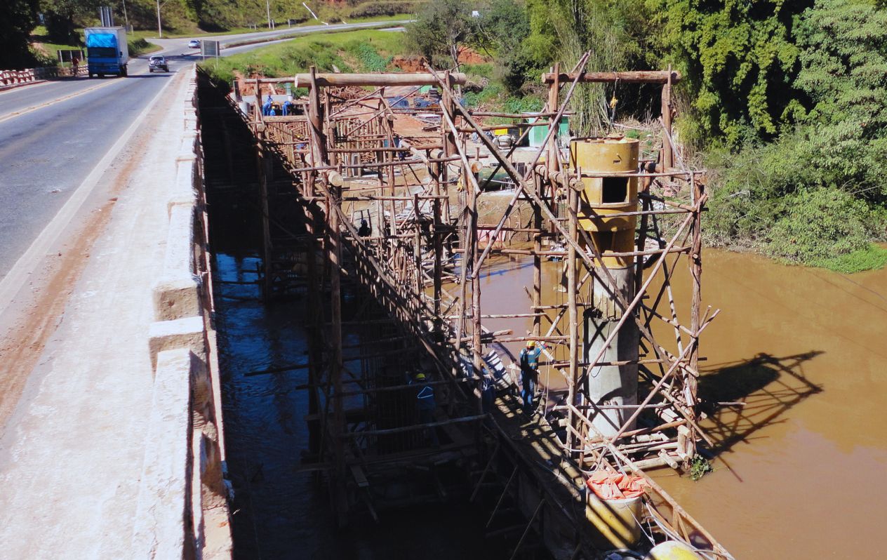 Duplicação de ponte rodoviária em concreto armado e fundação em tubulão a ar comprimido