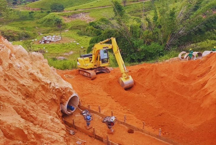 Construção, manutenção e adequação de bueiros para a transposição de cursos d'água, utilizando aduelas de concreto ou tubos metálicos.